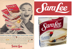 Sara Lee or The Kitchens of Sara Lee was a chain of bakeries that started in Chicago in the fifties and specialised in frozen cheesecakes that could be easily transported all over America. The owner Charles Lubin, named the business after his eldest daughter and to this day, the real Sara Lee has never been near a cake tin and instead became a prominent philanthropist.