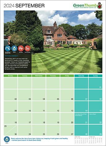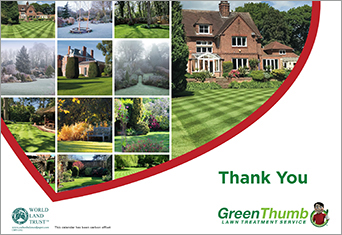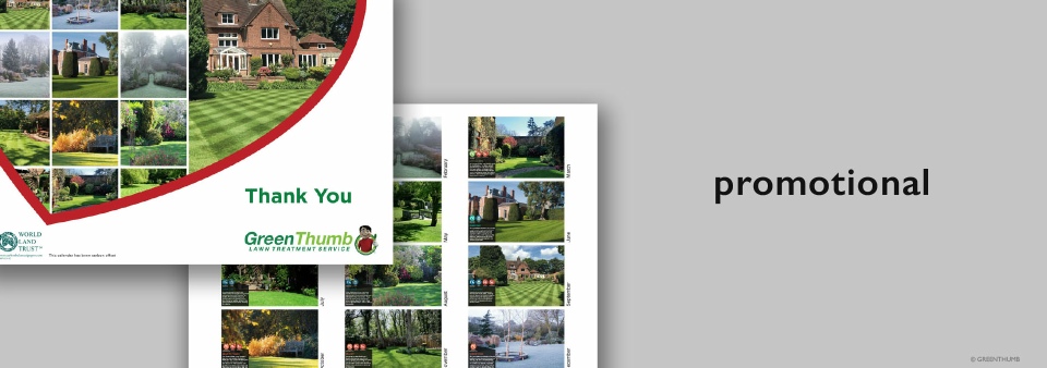 GreenThumb required a design for their annual calendar. The top section was devoted to a large format image of a customer’s lawn along with promotional details of the Treatment Programmes available. The base section had a large legible calendar that incorporated both previous and future months along with notable dates.